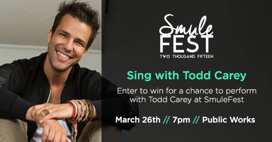 Smule is throwing our very first SmuleFest! SmuleFest2015 will feature our partner artist and friend Todd Carey on March 26! Here is YOUR chance to sing on stage with Todd! 🙂