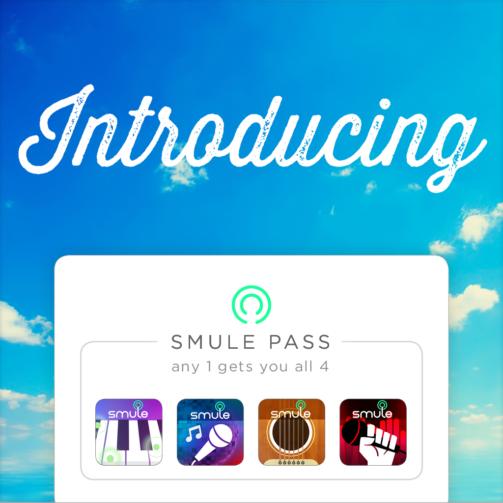 Introducing the Smule Pass: This all-access pass will give Smuleans unlimited access and full benefits on every app in the Smule family! This means that once upgraded, you will receive full VIP access to all four of our apps: Sing! Karaoke, Magic Piano, AutoRap, and Guitar! The Smule Pass grants you: