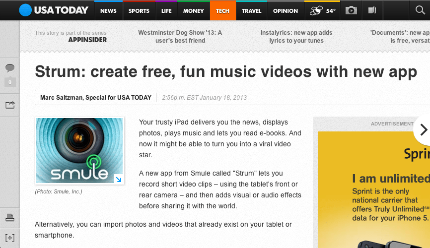 WOW! STRUM FEATURED IN USA TODAY!!!